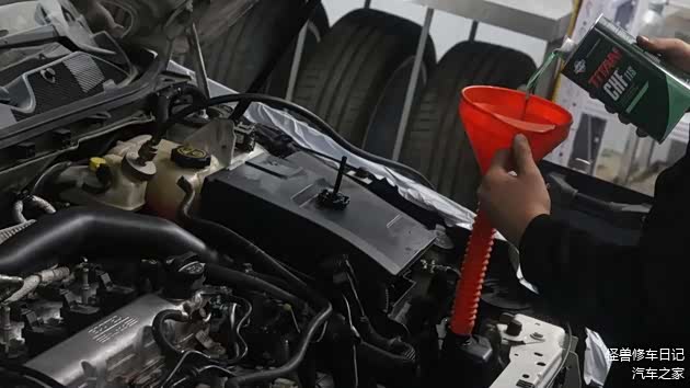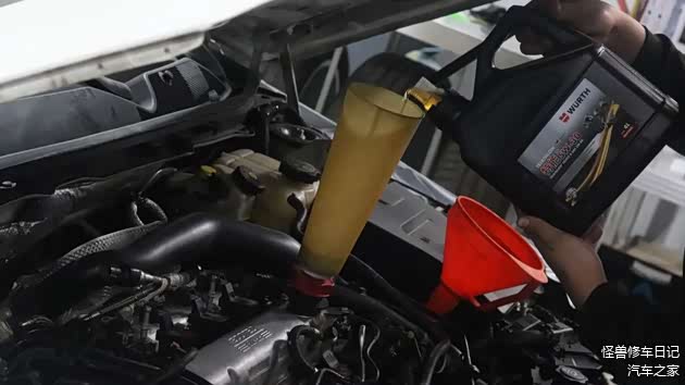 开搞,添加发动机内部清洗剂,放干净旧油及杂质。