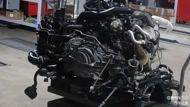 发动机和元宝梁组装好,别克这2.0T机器,看着挺唬人。