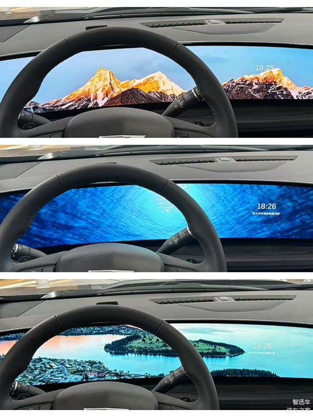 此外,5.0版本车机的沉浸模式让我感到有些惊喜,深蓝秘境、日铸金峰、时光溢彩,三种模式的视觉效果都十分出色,这块33英寸9K曲面连屏真的是yyds。