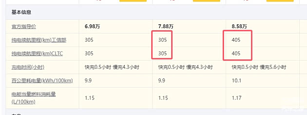 首先,就是续航更多一点,海鸥的低中配版本,人家的电池包是30.08kwh的,只有顶配有38.88kwh,并且快充时的功率也会更大一些,能达到40kw,值得一提的是电池也更安全,因为比亚迪给加入了液态冷却系统,防止车辆升温,当然,电池包更大,同时也意味着续航的提升,低配只有305的官标,而顶配则能把续航干到405公里。