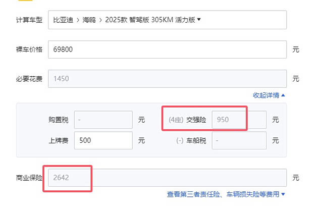 很多人还会说保险费的问题,这里要提到一件事情,保险费是按照整车来算的,其实也没增加多少,低配的保险费是交强险950元+2642元的商业全险,加起来也就是3592元,而顶配的保险费,交强险不变的情况下,也就是商业险多了一点点而已,达到了2847元,可这点保险费增加,对车主来说,其实影响也不是很大了,毕竟也就是多了105块钱的保险费。