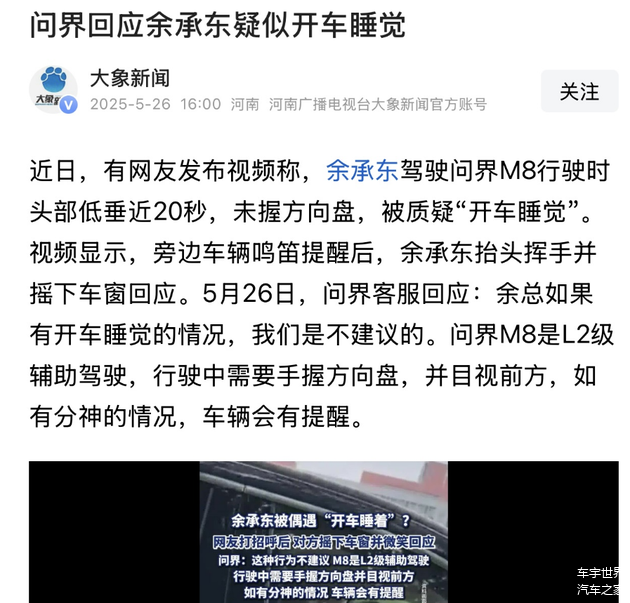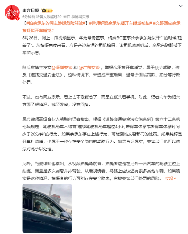 “疑似余承东开车睡觉”视频,迅速引发网络关注