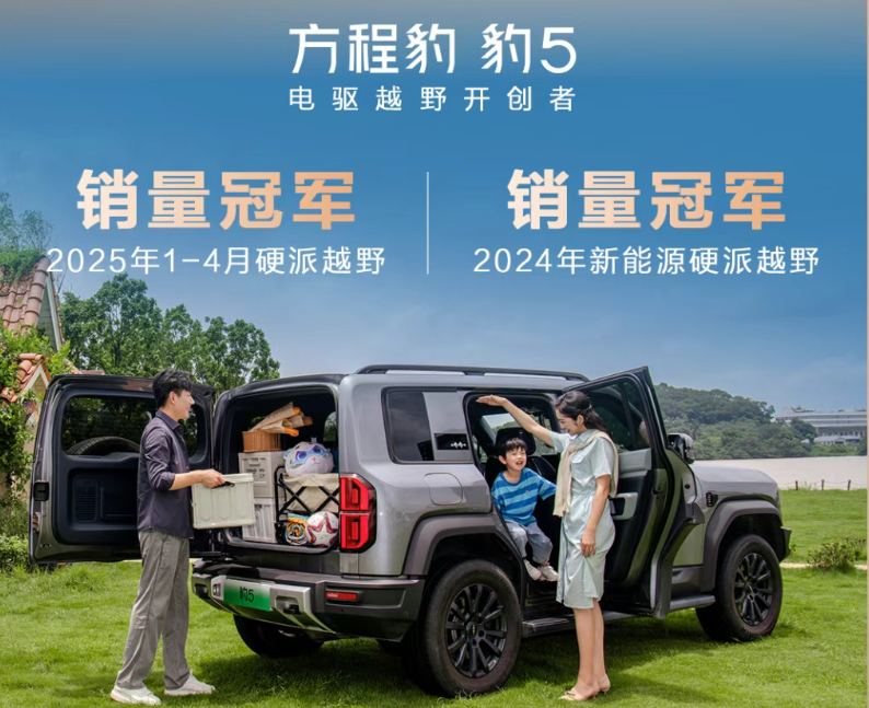 首先是豹5,搭载DMO越野混动技术的它,解决了传统硬派越野SUV能耗高、动力/舒适性差以及配置低的特点,上市一年的时间便获得了2024年新能源硬派越野SUV的销量冠军,在今年的1-4月份,豹5的销量再次在硬派越野市场一骑绝尘,可以说这台车的上市改变了消费者对于传统硬派越野SUV的认知。