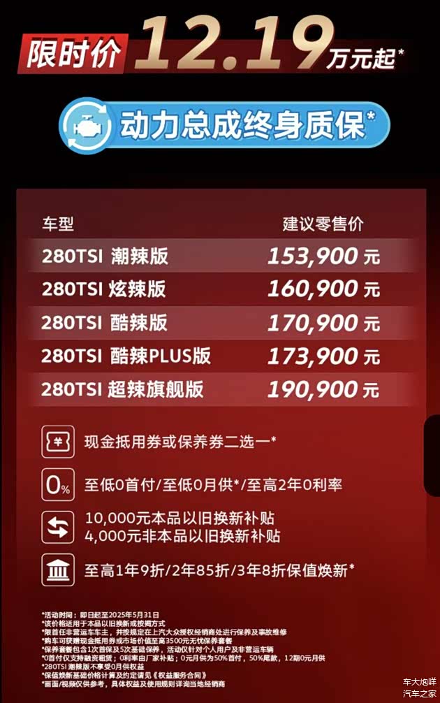 日前,笔者从上汽大众官方获悉,2025款大众凌渡L 280TSI酷辣PLUS版现已上市,指导价17.39万元。新车的定价介于280TSI酷辣版与280TSI超辣旗舰版之间,可以视为次顶配车型,动力方面延续1.4T涡轮增压发动机匹配7速干式双离合变速箱。现阶段,2025款大众凌渡L共计可选5款车型,整体售价区间15.39万-19.09万元。