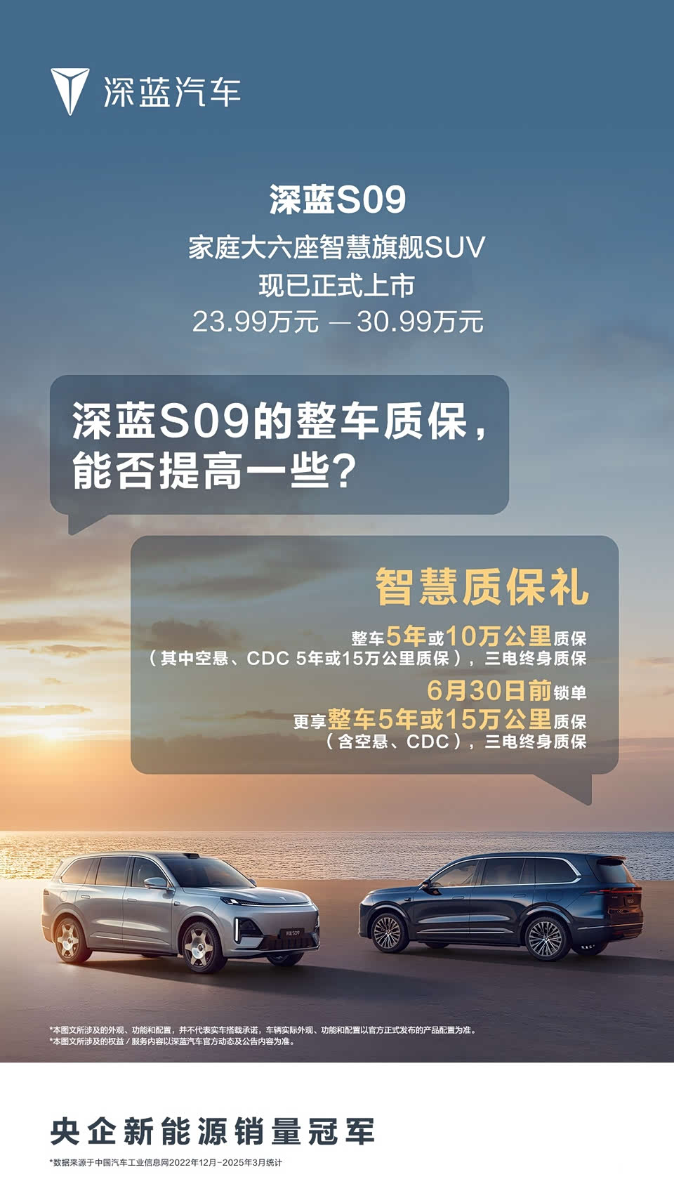 在理想L9、问界M9等9系旗舰SUV成功后,这一细分市场迎来爆发。近日,又一款9系SUV上市,它就是深蓝S09,新车推出5款车型,补贴后价格20.49万-27.49万元,相比35万元的预售价大大降低。