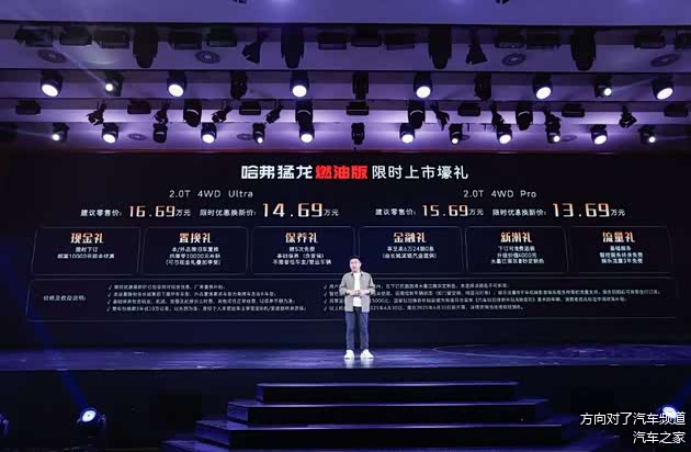 5月27日, 哈弗猛龙燃油版正式上市,为硬派越野爱好者带来了全新选择。新车共推出两款车型,售价区间为 15.69 - 16.69 万元,限时优惠价 14.69 - 15.69 万元,限时优惠换新价更是低至 13.69 - 14.69 万元。这一极具竞争力的价格,让哈弗猛龙燃油版在上市之初便赚足了眼球。