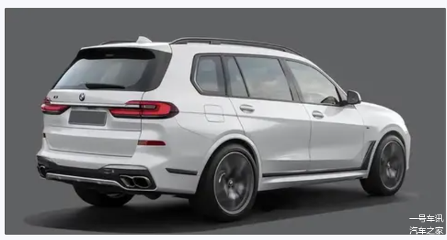 车身侧面,整体尺寸大概率与现款保持一致。前后轮眉变细,却依旧保留双层轮眉设计,别有一番风味。腰线从车尾向车头延伸,带有明显下沉趋势,位置也更接近中位,营造出一种独特的动势。车窗周围的黑色元素与侧裙等,则与现款别无二致,维持了宝马 X7 一贯的风格。车尾部分,主要是细节上的优化调整。两侧半环形尾灯中央嵌入一条银色装饰带,后包围由双层元素包裹,双边排气裸露在外,战斗气息十足。