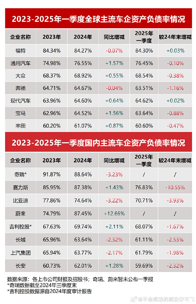 根据2023-2025年一季度上市公司财报数据,比亚迪70%的资产负债率处于行业合理区间。横向对比显示,福特(84%)、通用汽车(76%)、苹果(80%)等国际巨头的负债率均高于比亚迪。汽车制造业作为重资产行业,前期技术研发、产能建设需巨额投入,高负债率是全球共性特征。以苹果为例,其高负债源于现金流管理策略(如债券融资回购股票),而非偿债能力危机。