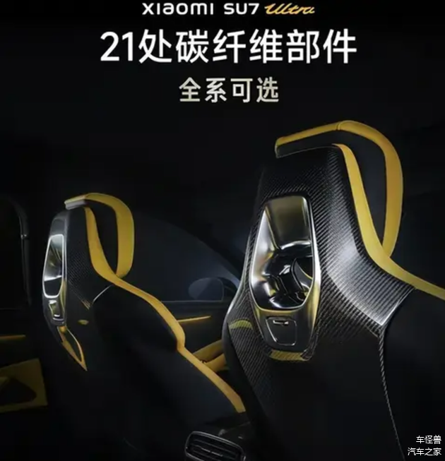 在内部装饰上,小米SU7 Ultra装备了7.1英寸的液晶仪表盘和16.1英寸的中控显示屏。此外,车内的许多细节都可以选择碳纤维作为装饰,而标准配置是5平方米的Alcantara超细纤维材料。小米SU7 Ultra配备了碳纤维制成的运动方向盘,并搭配了黄色的回正标志。此外,这款车还配备了碳纤维制成的中控面板、座椅背板、空调后出风口装饰板、迎宾踏板以及门板装饰条等多个部件,整体设计营造出一种强烈的运动氛围。据了解,这款车为用户提供了21个可选择的碳纤维部件。小米SU7 Ultra在前排座椅的靠背区域添加了Ultra的英文标志,而后排座椅则支持以4/6的比例倾斜,以便容纳更多的大型物品。在其他配置上,这款车配备了双50瓦的手机无线充电功能、全新的25个扬声器音响系统以及前排座椅的按摩功能。小米SU7 Ultra自出厂之日起就配备了小米的端到端全场景智能驾驶功能(HAD),这一功能将广泛应用于高速公路、城市高速道路、复杂的城市道路和停车场等多种场景的智能驾驶体验。