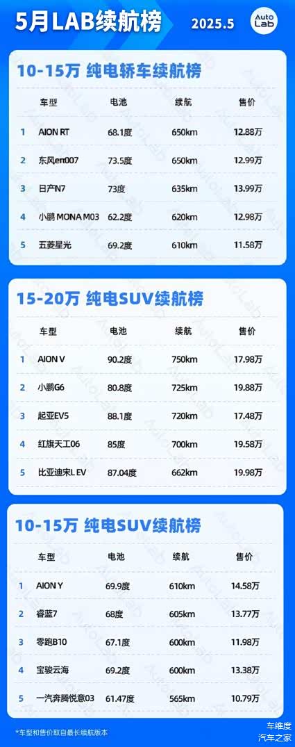 续航是纯电动汽车的基本功,也是当下消费者买电车最看重的关键点,这份榜单筛选出各个区间同级最长续航TOP 5车型,给大家一个选购参考。