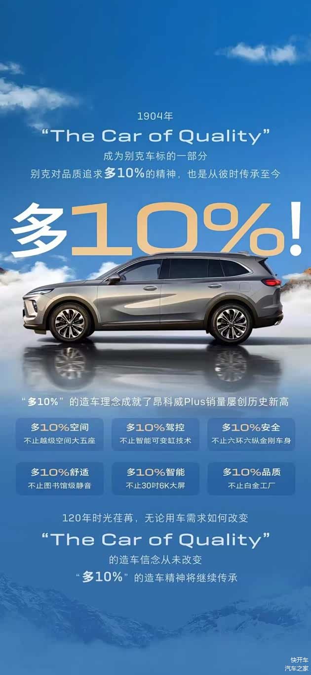 早在120年前,“The Car of Quality”是别克车标的一部分,品质“多10%”造车理念一直传承至今。“多10%”理念成为别克昂科威屡创佳绩的源头动力,也为同级树立了价值标杆。