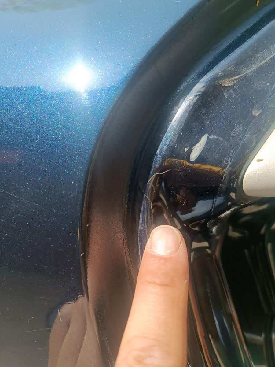 而实际检测下来,右后方出过事故,右后翼子板切割焊接,右侧C柱里口变形开裂,车体结构件都伤到了,定义为事故车;
