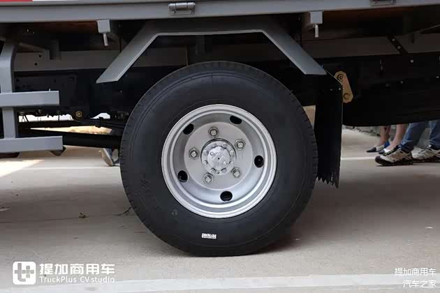 车桥搭载3.5吨级别五十铃技术车桥,考虑到车辆市区行驶和需要低速大扭矩的工况居多,这辆车的后桥速比是比较大的,达到了5.571。如果说用户跑高速多,需要一个快桥的话,庆铃五十铃还可以提供4.875速比的车桥。