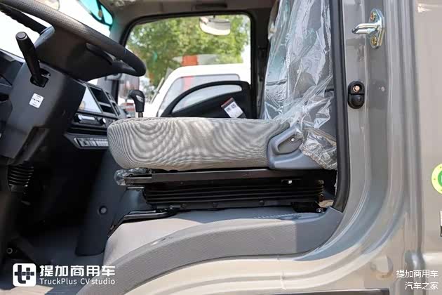 这是我第一次在庆铃五十铃KV100车型上看到气囊减震座椅的配置,这款座椅的起伏行程大概在30cm—40cm之间,减震效果尚可。座椅采用织物表面,填充柔软,符合日系车一直以来“冬暖夏凉”的坐感。