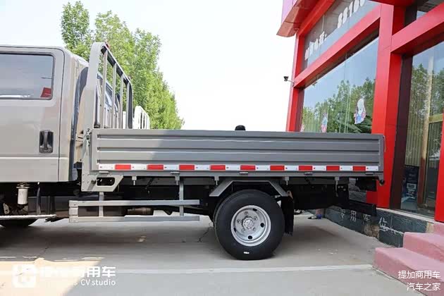 庆铃五十铃车型坚守高品质产品,车厢全部采用原厂上装,实拍的车型还是竹胶地板的栏板车厢。这款车厢相比于常规的金属地板车厢而言更加耐腐蚀,也耐磨损,因为是竹胶材质,所以地板生锈的概率就是0,经得起耐久考验。