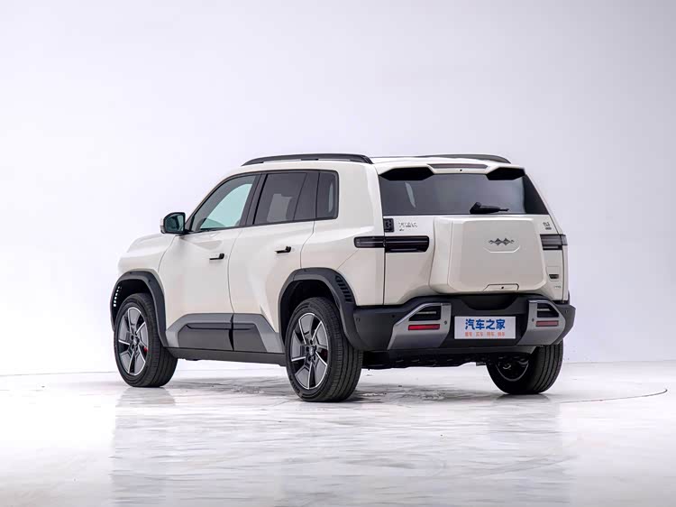 在外观设计上,钛3延续了品牌标志性的星战铠甲理念,整体风格强调视觉硬朗度。前脸设计引入动态黑色中网元素,搭配两侧粗犷的装饰条,营造出一定的科技与力量平衡。普通版本的车身尺寸控制在长4605毫米、宽1900毫米、高1720毫米范围内,轴距为2745毫米,确保了空间实用性的同时维持紧凑轮廓。车顶可选无人机舱配置,此版本高度增至1930毫米,提供了额外拓展功能。车身侧面线条趋于平直,轮拱突出细节强化了硬派基调,隐藏式门把手融入后,视觉整体性未受破坏,使整车显得精简有力。尾部设计保留了传统硬派元素,如横幅尾灯和被称为“冲天之势”的备胎包(俗称“小书包”),后者能与车载无人机系统协同使用;大尺寸扰流板的加入,在不牺牲功能性前提下,略微提升了动态观感。