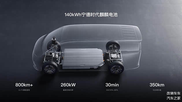 动力与续航表现同样卓越。搭载前后双永磁同步电机,功率400kW,扭矩686N・m,零百加速5.5秒,性能超越5.0TV8发动机。140kWh宁德时代麒麟电池带来CLTC825km超长续航,充电15 分钟可补能350km,长途行车无需充电焦虑。