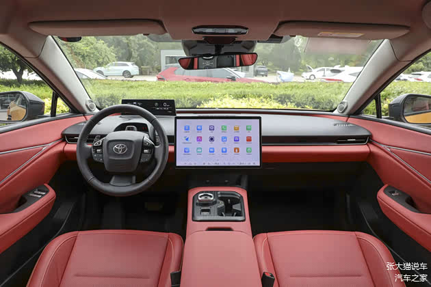 外观方面,bZ5延续丰田“锤头鲨”家族前脸,封闭式格栅搭配C形贯穿灯组,LED灯带衔接两侧锐角大灯,形成俯冲式视觉张力。