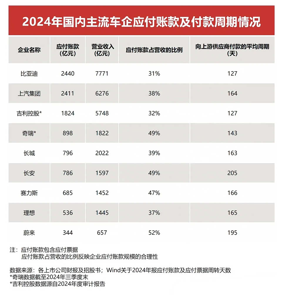 对于车企的付款周期,根据财报数据统计,国内主流车企都在127天-205天之间。
