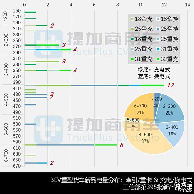 BEV重货电量分布:400+600度双核方案突出,充/换电式主流领域争夺异常胶着
