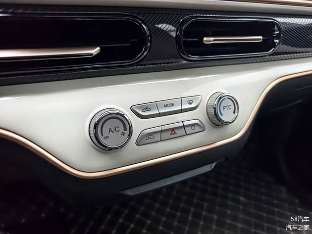 车辆内部设计颇为简洁,中控台配备液晶仪表盘和悬浮中控屏,配合双幅式方向盘,看上去既复古又时尚。值得一提的是,主副驾位置采用了贯穿式设计,而这也在一定程度上增加了横向空间。为了保证车内的实用性,在中央空调出风口下方还设计有快捷物理按键供车内人员使用。