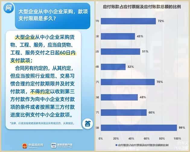 相反,广汽是第一个响应政策的车企。因为它的账期是152天,应付款305亿,货币资金383亿,覆盖率125%,提前支付184亿问题不大。