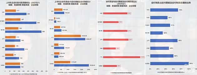 现实是什么?2025年Q1财报中,比亚迪应付账款+票据2526亿、账期164天;上汽2262亿、166天;长城735亿、210天;长安733亿、232天。