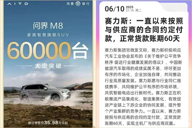 赛力斯同样危险,395天的账期压缩到60天,提前支付450亿,占其货币资金103%。好在问界销量还在逐月上涨,除了M8爆款以外,下半年还有全新一代M7可以补充弹药。