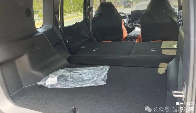 目前曝光的车型,内饰是采用五座设计,座椅放倒之后也支持秒变大床房模式,搭配对外放电功能,对露营爱好者十分友好。