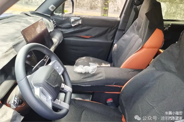 内饰方面,该车配备了四辐式方向盘采用怀档设计,中控配备大尺寸悬浮屏目测15.6英寸以上,冷暖冰箱预计将配置在中央扶手区域。