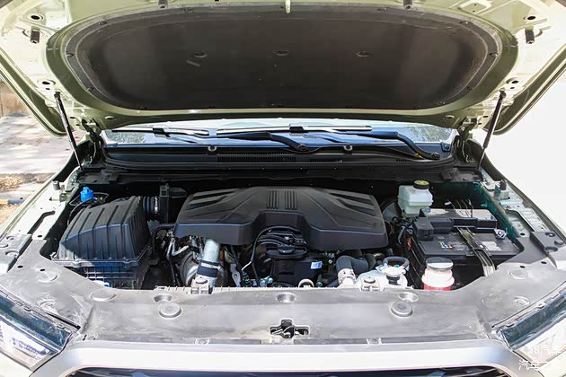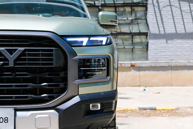 前脸部分,硕大的黑色中网力量感十足,底部的银色护板也彰显出不错的越野实力。中网内部英文Logo以及引擎盖处的镀铬“威麟”标识很好的表明了身份。