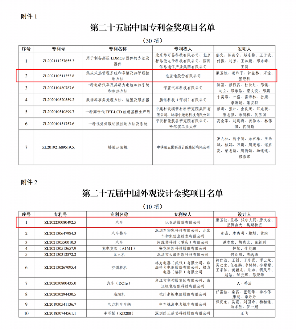 比亚迪获奖了!近日,国家知识产权局正式发布《关于第二十五届中国专利奖授奖的决定》,比亚迪凭借领先的技术创新和卓越的设计能力,成功摘得两项重量级专利大奖。其中,集成式热管理系统专利荣获第二十五届中国专利金奖,腾势D9外观专利荣获第二十五届中国外观设计金奖,坚持用创新打造世界级品牌。