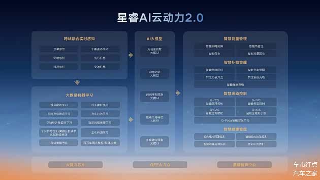 相比于目前市面上大部分电混技术而言,星睿AI云动力2.0最大的创新亮点就在于“AI场景引擎”的设计理念。
