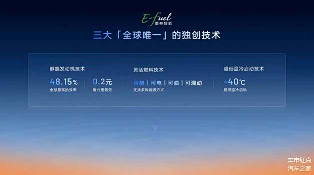 而雷神醇氢EF作为雷神AI电混2.0全球独创的电混技术路线,不仅第五代醇氢专用发动机热效率48.15%,达到了全球最高的水准,每公里醇耗费用最低只要2毛钱,而且还能灵活匹配甲醇、汽油、电、混合能源等形式,支持甲醇燃料在零下40℃低温下的启动。按照规划,四季度吉利将推出两款搭载了雷神醇氢EF的产品,轿车和SUV各1款。