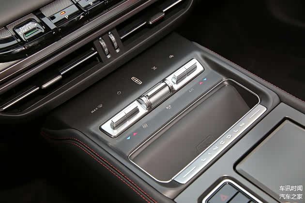 内饰方面,林肯Z确实能让人眼前一亮。可以看到,内饰氛围充满科技感,尤其是中控区域,配置了长达27英寸巨型屏幕,左侧还有一块12.3英寸的全液晶仪表。两幅式方向盘的设计比较讨年轻人喜欢,富有艺术气息,整个车内整体感清爽兼具时尚质感。而且用料也是美系豪车的优势,大量皮革包裹触手可及,给人一种满满的高级感。