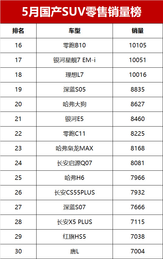 在1-10名之后,还有许多车型也有着各自的表现。例如,银河星舰7 EM-i销量10051辆,理想L7销量10016辆,都成功突破万辆大关。深蓝S05销量8835辆,哈弗大狗销量8627辆,在各自细分市场中努力竞争。而曾经的热门车型哈弗H6,本月销量为7966辆,在激烈的市场竞争中,面临着不小的挑战。