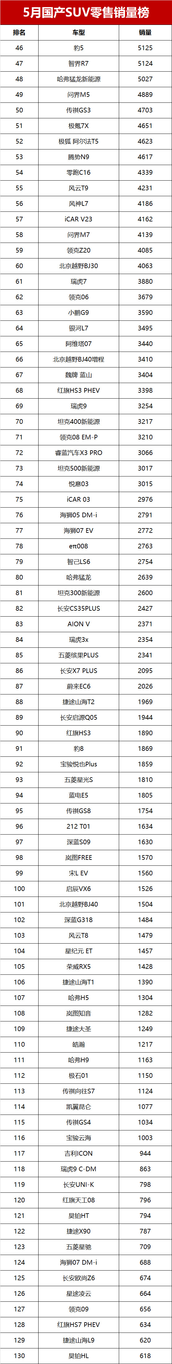 从整体市场来看,国产自主品牌SUV在5月的表现呈现出多元化的态势。头部车型凭借品牌影响力、产品力等优势,继续保持领先地位;而一些新车型则通过独特的定位和性价比,逐渐在市场中站稳脚跟。随着市场竞争的不断加剧,各车企也将不断提升产品实力,为消费者带来更多优质的SUV车型,未来国产自主品牌SUV市场的竞争格局也将更加精彩。