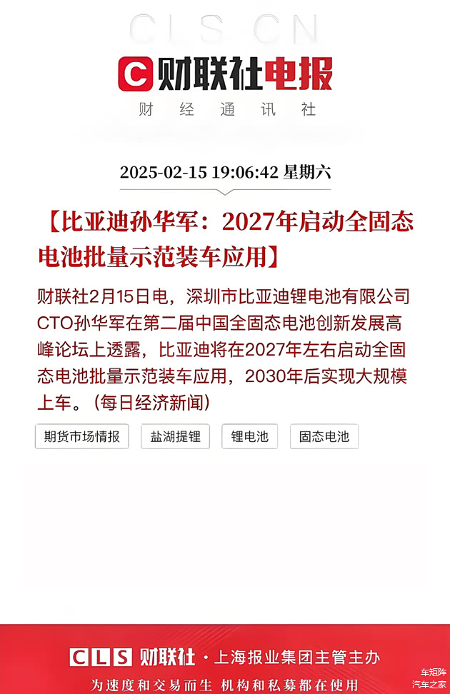 多家车商表示:2027年将会成为固态电池量产上市的”元年“!真的是这样吗?或仍需假以时日!不过随着固态电池量产上车时间的越来越近,新能源车企之间的新一轮的竞争也将全面展开,期间的激烈程度可想而知,不知又有哪家新能源车企撑不住而会轰然倒下!对于老百姓而言,固态电池大规模量产上车带来的实惠和安全便捷则要比现在的新能源车型强上不知多少倍!