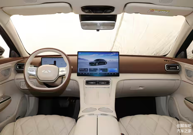 走进车内,风云 A9L 的内饰风格令人眼前一亮。不同于奇瑞家族其他车型,它采用了极简设计,上下双色的配色方案,营造出独特的视觉层次感。悬浮式液晶仪表屏搭配 15.6 英寸悬浮式中控屏,虽说整体造型较为中规中矩,但清晰的显示效果和流畅的操作体验,还是能带来不错的视觉享受和使用感受。