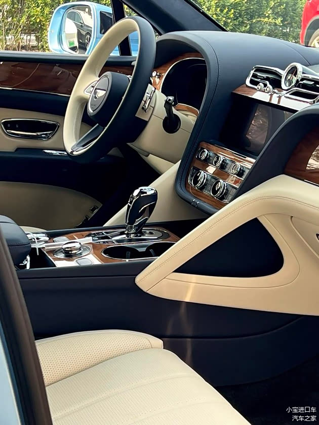 3、反衬色宾利徽章座椅刺绣 4、3辐式双色加热真皮镶边方向盘