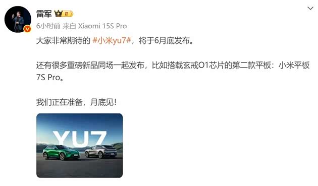 今天早上8点,雷总在微博确定了小米YU7最终发布时间为6月底(猜测26日),目前看来这一计划确实提前了,那小米为什么会提前一个月发布呢?