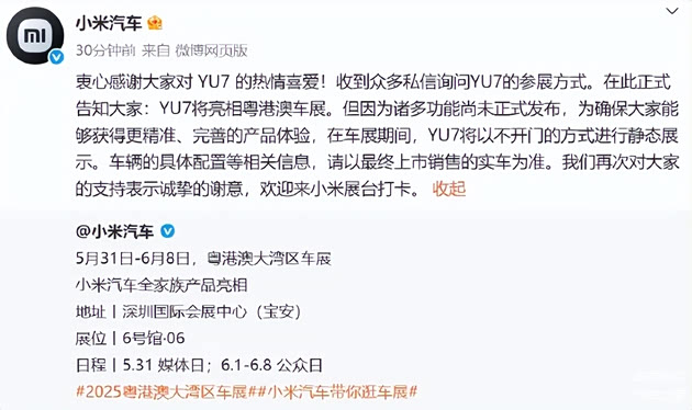 在今年上海车展时小编曾询问过小米汽车的相关人员,当时相关负责人表示,根据小米汽车的规划,小米YU7定于今年6、7月份上市,到底是6月份还是7月份给出的时间模棱两可,很有可能就是看具体情况而定。