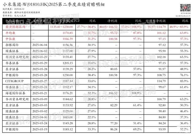 小米集团第二季度财报还没有发布,但是经过相关数据预估,小米集团在2025年第二季度实现了收入和利润的历史新高,总收入达到1170.85亿元,同比增长31.7%,净利润为95.72亿元,同比增长87.8%,经调整利润101.12亿元,同比增长63.8%。对于即将上市的小米YU7,国际知名投行摩根士丹利认为预计其平均售价可能会高于小米SU7;相较于如火如荼的6.18购物节,摩根士丹利认为小米YU7的上市对小米集团股价的重要性更为突出。6月底随着小米YU7的上市,以它的价格、配置必将成为又一个现象级产品,可以预想到小米YU7在汽车市场必然遭到疯抢,一单难求、APP页面宕机,未交付订单积压如山的局面。