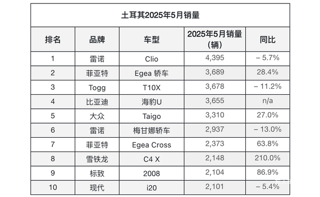 土耳其5月轻型新车销量达到超10万,达到107,730辆。同比增长7.4%,表现强势,按年看,也有增长。2025年头5个月同比增幅为3.7%。销量接近49万,为489,366辆。