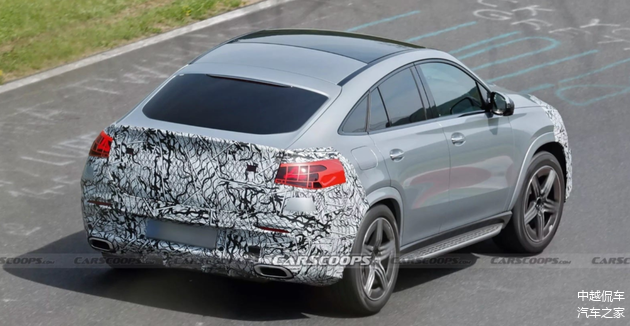 GLE轿跑版则与GLE保持同步升级节奏,前脸设计完全一致,尾部变化更为明显。测试车尾灯区域同样被伪装覆盖,但可观察到后挡风玻璃倾斜角度略有调整,配合收敛的车尾线条,整体视觉比例更加协调,运动气质进一步凸显。