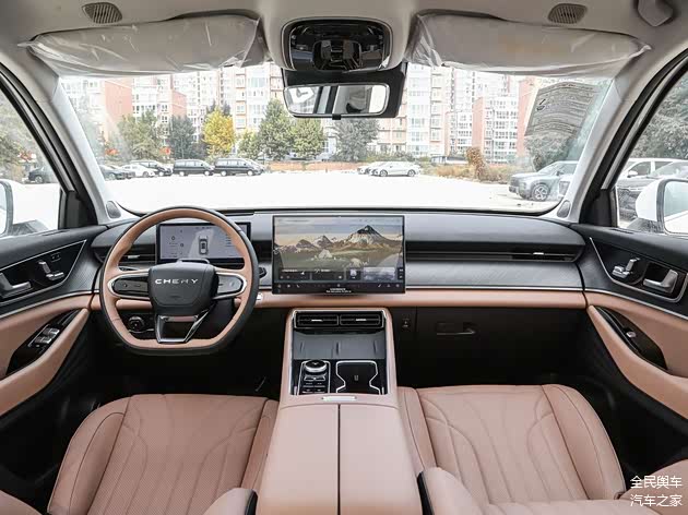 走进车内,新款瑞虎8L采用环抱式座舱设计,三幅式平底多功能方向盘握感舒适。10.25英寸立体全液晶仪表盘以及15.6英寸的窄边2.5K悬浮式中控屏十分吸睛,内置高通骁龙8155芯片,车机系统功能丰富,操作流畅。大量软性材质的运用搭配精致的缝线工艺,提升了内饰的质感。
