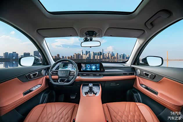 内饰部分同样延续了老款车型的设计,三幅式方向盘搭配虎头标水晶挡把以及24.6英寸曲面双联屏,全力打造豪华智能座舱。车机系统采用LION 5.0雄狮智云系统,支持智能语音、丰富的车联网APP功能、远程车辆控制等功能,极大地提升了出行的趣味性和便捷性。