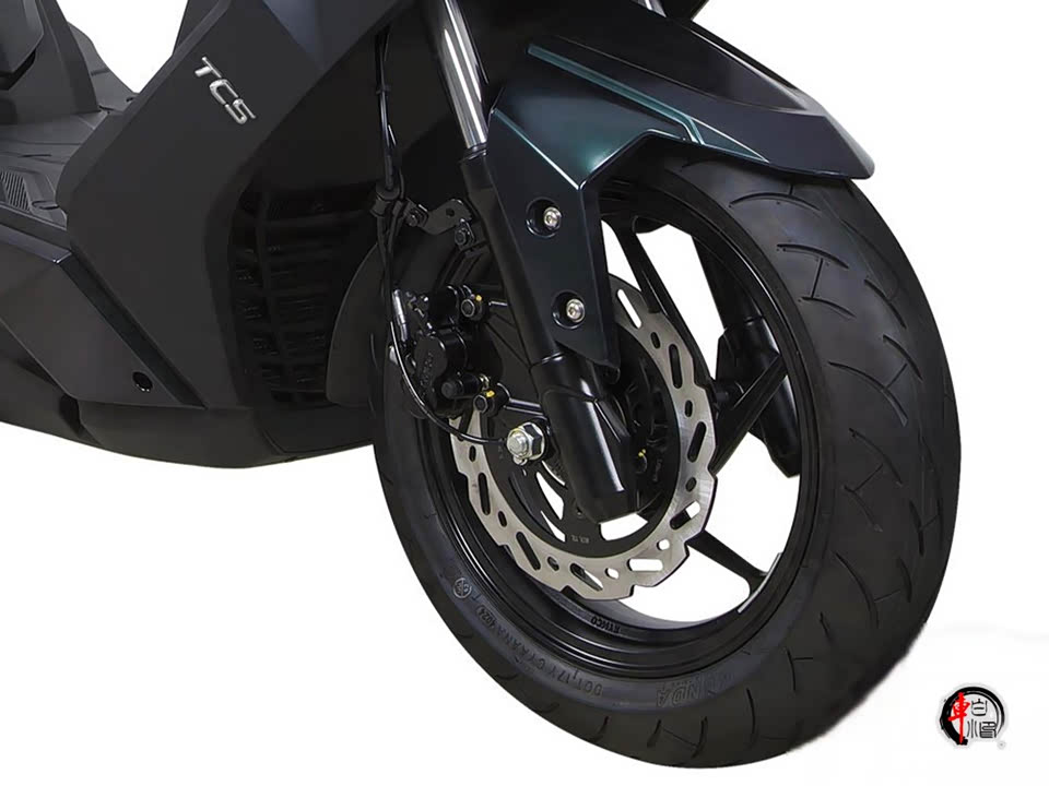 刹车安全:前单盘双活塞卡钳+后单盘单活塞卡钳,标配双通道ABS与TCS牵引力控制系统。