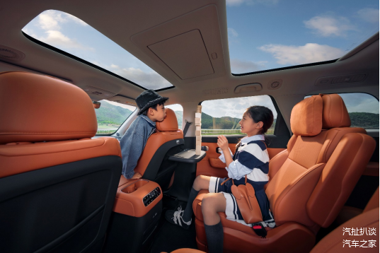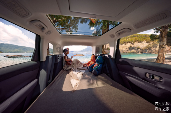 唯一配备后备厢观影模式:在户外露营时,后排成床后,利用床垫、撑杆,搭配15.6英寸后排屏与21扬声器PSS豪华音响组合,可打造沉浸式家庭影院。