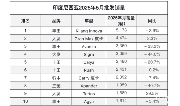 2025年5月,印度尼西亚新车市场同比暴跌14.9%,批发销量降至60,613辆。按年看,2025年头5个月同比下滑5.4%,销量不足32万,为316,981辆。零售市场表现类似。同比下降15%,零售销量61,339辆。2025年1-5月累计零售销量328,852辆,同比下跌9.1%。。